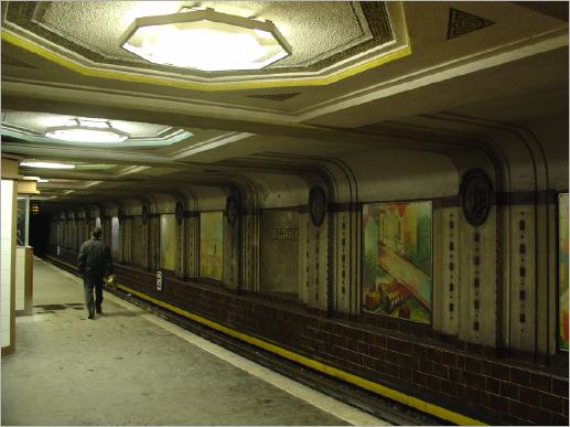 Auf dem Weg in die Innenstadt ist der nächste Bahnhof am Rüdesheimer Platz, wegen der Fresken mit Insektendarstellungen auch "Wanzenbahnhof" genannt. Faune und Satyrn, Weinlaub und Trauben verweisen auf die Weinregion, nach der der Bahnhof benannt ist. Hier wie in anderen Bahnhöfen finden sich in den Wandvertiefungen teilweise Bilder von zeitgenössischen Malern. Dieser Bahnhof ist wie alle anderen auf meinem heutigen Wege rund 110 m lang.