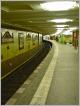 Zielbahnhof meiner heutigen Reise ist der Hohenzollernplatz. Hochherrschaftlich gestaltet, preußische Adler überall, bildliche Zitate der Ausblicke, die die Hohenzollern auf ihren Schlössern haben, zieren die Wandvertiefungen. Selbst der Grundstein von 1909 wurde wieder ausgebuddelt. In Betrieb gegangen ist der Bahnhof wie alle anderen auf meiner heutigen Route dann 1913, die Hohenzollern als deutsches Kaisergeschlecht haben also noch fünf Jahre Freude daran haben können, bevor die Demokratie der deutschen Monarchie endgültig den Abschiedskuss verpasste.