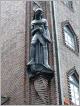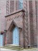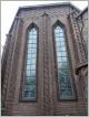 Drei Baukörper verbinden sich zur Kreuzkirche (1): der breite rechteckige Turm an der Straße ist mit dem achteckigen Andachtsraum durch einen niedrigeren Kreuzgang verbunden. Auch wenn man es nicht auf Anhieb sieht: Die Kirche steht in Hanglage, in der eiszeitlichen Vertiefung dahinter befindet sich die Wasserfläche eines Rückhaltebeckens. In der Fassade sind die Eisenklinker mal flächig, mal ornamental angeordnet wie bei den gedrehten Ziegelsäulen, bei Fenster- und Türumrandungen und bei Zackenfriesen. Säulenfiguren aus Keramik betonen die Ecken des Turms. Man betritt die Kirche durch den Portalvorbau in Pagodenform aus blau glasierter Keramik, einem besonderen Hingucker bei diesem ohnehin durch seine expressionistische Form und Gestaltung ungewöhnlichen Sakralbau. Als erstes steht man in dem kleinen Andachtsraum im Turm, der "Brauthalle". Deren Namen ist abgeleitet von der Aussage des Apostels Paulus, dass die Gemeinde die Braut Jesu ist. Witzige Duplizität: Der Architekt, Ernst Paulus, war ein Namensvetter des Apostels. Einzelne Bögen am Anfang und am Ende des Kreuzgangs nehmen die Farben des Regenbogens auf, die Brauthalle selbst und der Kreuzgang sind gelb und rötlich wie die Sonne gefärbt.