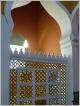 Über dem quadratischen Hauptgebäude erhebt sich eine 26 Meter hohe Kuppel mit 10 Meter Durchmesser. In diesem Gebetshaus versammelt sich die Gemeinde zum Freitagsgebet. Außerhalb der Gebetszeiten dient das Haus als islamisches Informationszentrum. Der Innenraum wird von kräftigen Farbflächen in gelb und orange beherrscht, die an den Rändern weiß abgesetzt werden. Die traditionelle Endlosmuster und Ornamente, die man aus anderen islamischen Ländern kennt, sind hier nicht vertreten.