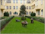 Straße gegen Bildungszentrum getauscht Dass man in den 1970er Jahren in der Innenstadt eine Stadtstraße entwidmet hat, um hier ein Bildungszentrum zu bauen, kann man sich heute kaum vorstellen. Schließlich war es das Zeitalter der Autogerechten Stadt, als man Stadtautobahnen wie die an der Schlangenbader Straße verwirklichte und Autobahnkreuze wie am Oranienplatz plante. Aber Bildung war offensichtlich wichtig, und der Flächenbedarf war vorgegeben: Pro Schüler war eine Grundstücksfläche von 30 qm anzustreben. Das erinnert an die "Scharrfläche" für Hühner, die von der EG geregelt ist, allerdings müssen dort neun Hühner mit einem Quadratmeter auskommen.