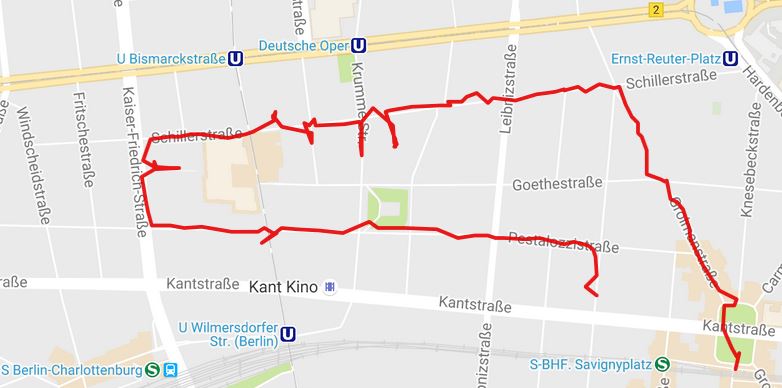 Der Kiez, den wir heute besucht haben, liegt zwischen Kantstraße (Savignyplatz) und Bismarckstraße, der engere Bereich zwischen Pestalozzistraße und Schillerstraße. Im Norden schließt sich die Altstadt von Charlottenburg an, im Süden der Kurfürstendamm-Bereich, doch das Gebiet dazwischen hat keinen Namen. Und es ist - man muss es leider sagen - nicht einladend, trotz vieler Bürgerhäuser aus der Gründerzeit und einzelner Gewerbehöfe, die wir hier nicht erwartet hätten. Die Fußgängerzone Wilmersdorfer Straße als Bedarfsdeckungsmeile ohne Flair, die leer stehenden Läden in den Seitenstraßen, manche renovierungsbedürftige Häuser, hier sieht es nicht nach Aufbruch aus.