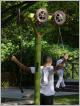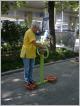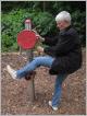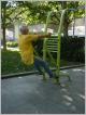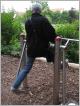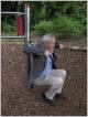 Seniorenspielplatz Mitten im Preußenpark liegt der Platz mit den Fitnessgeräten, der offiziell nicht "Seniorenspielplatz" heißt, aber auf die besonderen Bedürfnisse und Möglichkeiten älterer Menschen zugeschnitten ist. Die Idee hierzu kommt aus China, wo die gemeinsame sportliche Bestätigung in öffentlichen Parks - man denke nur an T'ai Chi - längst zur Kultur gehört. Bei uns will man Sportmöglichkeiten speziell für die ältere Generation auf öffentlichen Grünflächen schaffen, die den Gleichgewichtssinn und die Feinmotorik verbessern und Schulter, Rücken und Beine trainieren. Übungsanleitungen mit Text und Bild sollen erklären, wie man die Geräte anwendet. Allerdings sind diese Hinweise hier oft so ungünstig angebracht, dass man schon zum Lesen Rücken und Knie trainieren muss und mit einer Verlaufsbrille auch noch dem Nacken unphysiologische Haltungen zumutet.