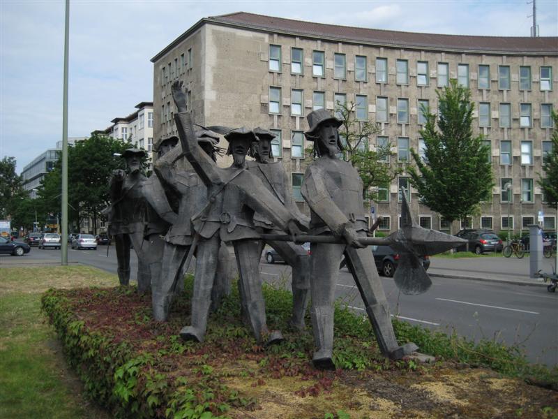 Sieben Schwaben, Preußenpark Und so habe ich vom U-Bahnhof Fehrbelliner Platz kommend die Sieben Schwaben auf dem Mittelstreifen vorbei ziehen lassen, jene Skulpturengruppe, die seit 1981 dort steht, ohne dass man genau weiß, warum. Ein Denkmal für schwäbische Kolonisten wird es wohl nicht sein, denn dass Berlin von Schwaben kolonialisiert wurde, steht nicht in der Stadtgeschichte.