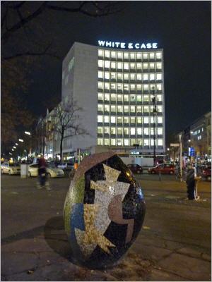 Am Kurfürstendamm Ecke Uhlandstraße steht etwas verloren eine Vase mit farbigem Mosaik, unverkennbar im Stil der 1950er Jahre. Der Künstler Gerhard Schultze-Seehof hat hier im Jahr 1957 Mosaiksteine aus der teilweise kriegszerstörten Kaiser-Wilhelm-Gedächtniskirche verarbeitet und damit eine Erinnerung an den Wiederaufbau der in großem Ausmaß zerstörten Stadt geschaffen. An anderer Stelle hatte er 1954 eine "Trümmersäule" errichtet.