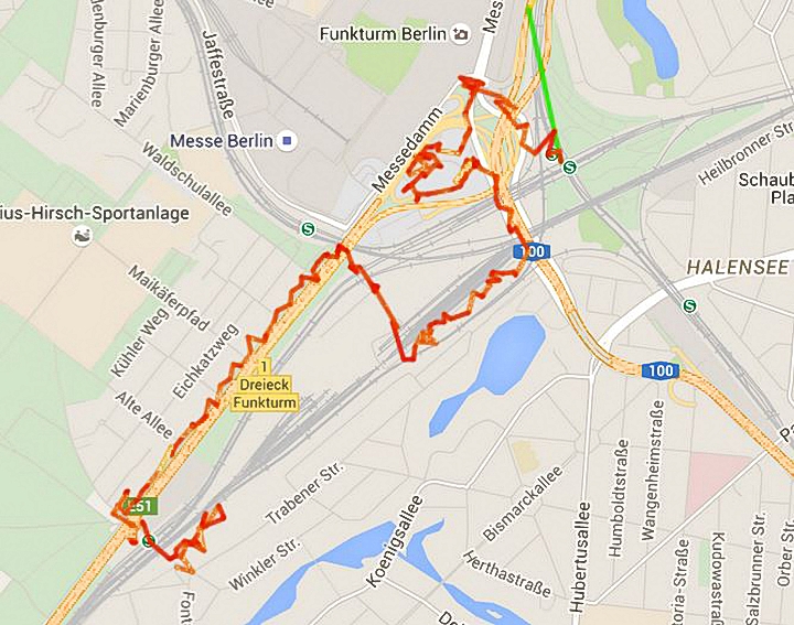 Unser Weg führt uns vom Bahnhof Westkreuz zum Bahnhof Grunewald über den Werkstättenweg (bis 1902 Bahnstraße, danach Bahnhofstraße) und durch den Tunnel unter den Gleisen zur Cordesstraße (bis 1906 Werkstattstraße, danach Werkstattweg). Entlang dieser Route warten die ehemaligen Bahnbauten - vielfach als ungenutzte Denkmale - auf ihre Zukunft. Ein schmaler Geländestreifen östlich der Gleise wurde 2009 als Hilde-Ephraim-Straße der Villenkolonie Grunewald an der Trabener Straße zugeschlagen und dort knirsch hinter einer hohen Lärmschutzwand mit Einfamilienhäusern bebaut.