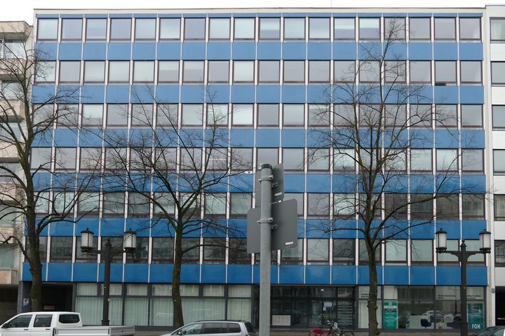 Bürogebäude in der Bismarckstraße Ein siebengeschossiges Bürogebäude für die Ruhrkohle hat neue Akzente gesetzt für die Berliner Nachkriegsarchitektur. Die Vorhangfassade mit quadratischen Glasscheiben wird von blau emaillierten Stahlblechbrüstungen horizontal gegliedert. Das Erdgeschoss ist etwas von der Baufluchtlinie zurückgesetzt.