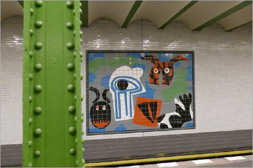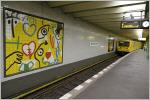 U-Bahnhof Bismarckstraße Unter der Bismarckstraße gibt es vier U-Bahnhöfe, davon einen Umsteigebahnhof. Dieser im April 1978 eröffnete Kreuzungsbahnhof ist seit sieben Jahren eine Baustelle, auch weil wegen Baupfusch neue Fliesen teilweise wieder abgerissen werden mussten. Die als Muster fertiggestellte Wand mit grünem Fliesen im Metallic-Dekor überzeugt mich nicht. Die Bauabteilung der BVG hat bei der eigenmächtigen Neugestaltung von U-Bahnhöfen keine gute Hand, ihr fehlt jedes künstlerische Empfinden, stadtprägende Gestaltungen sollten nicht von Sachbearbeitern gemacht werden. Den Stationsnamen in Riesenlettern an die Wand zu kleben, wie beispielsweise auf der Steglitzer Strecke zum Rathaus, ist ein Armutszeugnis. Den Umbau am Bahnhof Bismarckstraße leitet das Büro der heutigen Senatsbaudirektorin Kahlfeld, für das "Design" ist das Büro vielleicht nicht verantwortlich.