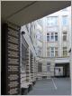 Im Quartier um die Simon-Dach-Straße sind wir vorher in der Grünberger Straße unterwegs und sind erfreut über die Vielzahl der Gewerbehöfe, die sich wie üblich weit ins Innere der Grundstücke erstrecken. Der Bezirk Friedrichshain-Kreuzberg hat im Haus Nr.54 seine Bibliotheksverwaltung und eine Stadtbibliothek in einem solchen Ambiente untergebracht. Auch die Bundesstiftung CIVITAS, eine Initiative gegen Rechtsextremismus in den neuen Bundesländern, hat hier ihren Sitz und weitere Jugendinitiativen mit Namen wie practikuss und ostia, die Servicestelle Jugendbeteiligung und ein Koordinationsbüro für kulturelle Jugendarbeit, die offensichtlich alle aus öffentlichen Mitteln finanziert werden.