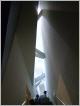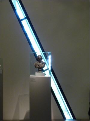 Der Museumsbau konnte bereits besichtigt werden, bevor Ausstellungen eröffnet wurden. 350.000 Besucher haben das leere Gebäude gesehen, das durch seine bloße Präsenz tief beeindruckt. Ich habe mich damals gefragt, wie hier eine Ausstellung gezeigt werden kann, die nicht mit dem Gebäude in Kollision gerät. Tatsächlich gibt es kaum neutrale Ausstellungsfläche, der Bau wirkt stark auf die Ausstellungsobjekte ein (1).