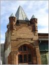Nach Kreuzberg gelockt hat uns Max Taut, der Bruder von Bruno Taut, beide waren Architekten. Das Haus der Deutschen Buchdrucker in der Dudenstraße fällt in einer Gegend mit blinden Schaufenstern von unvermieteten Läden und gesichtslosen Wohnbauten der Nachkriegszeit nicht so stark auf, wie es das verdient hätte. In der gelben Backsteinfassade wird der Name des Hauses durch die im Mauerwerk herausgehobenen Ziegelsteine angezeigt, ein ungewöhnliches Werbeschild.