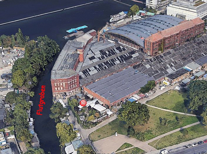 Atelierhaus am Flutgraben Die Spree gehörte an der Lohmühleninsel zu Ost-Berlin, der Landwehrkanal und der Flutgraben zum Westen. Am Flutgraben, direkt an der Kante von Land und Wasser, stand das Werkstattgebäude eines volkseigenen Autoreparaturbetriebes, das die DDR wunderlicherweise nicht abgerissen hatte, um freie Sicht und Schussfeld zu schaffen. Die linke Hauswand bildete die Grenzlinie, nicht einmal um das Haus herumgehen konnten die Grenzer.