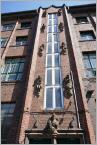 Ein Dreiecksgiebel hebt den Mittelteil des Gebäudes hervor, der als Risalit aus der Fassade herausragt. Als die Akzisegrenze (Zollgrenze) hier 1877 aufgehoben wurde, zog der Schleusenwärter in das Haus ein, vielleicht - frei nach Ulrich Roskis Moritat - mit seinem blinden Töchterlein.
