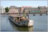 Steganlage in der Spree Unser Blick von der Lohmühleninsel über die Spree hinweg zur Media-Spree bleibt an einer merkwürdigen Steganlage in der Mitte der Spree hängen. Ungefähr 500 Meter lang ist der Steg, der keine Verbindung zum Land hat. Ursprünglich 1913 als Liegeplatz für wartende Schiffe vor dem Osthafen erbaut, bekam der Steg als Teil der DDR-Sperranlagen 1961 eine neue Bedeutung. Die DDR-Schifffahrt fuhr nördlich vorbei, die südliche Zufahrt zum (West-Berliner) Landwehrkanal war nur für technische Fahrten wie Eisbrecher offen.