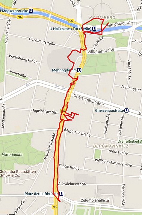 Stadtteil: Kreuzberg Bereich: Mehringplatz bis Platz der Luftbrücke Stadtplanaufruf: Berlin, Mehringdamm Datum: 25. April 2016 Bericht Nr: 543