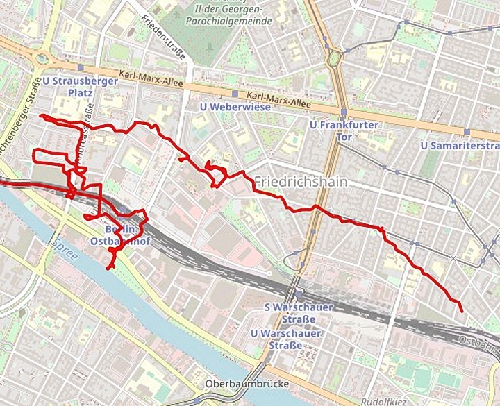 Für unser Flaniermahl sind wir im richtigen Kiez angelangt, in der Sonntagstraße bekommen wir Speis und Trank und können dann vom Ostkreuz die Heimreise antreten.