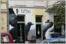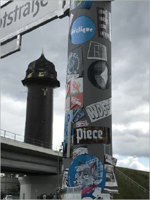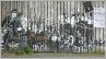 Graffitiflächen Von der Spree bis zur Frankfurter Allee erwandern wir heute den Bezirk Friedrichshain mit wachem Blick für Graffiti. Sie verteilen sich auf unserem Weg nicht gleichmäßig wie in Kreuzberg, sondern sind an mehreren Hotspots geballt als Stencils oder Paste-ups, seltener als Spray paints und kaum als Murals (*) zu finden. Wo sie in kleinen Formaten eng an eng und übereinander Hauseingänge oder Wandflächen füllen, wirken sie wie Visitenkartenalben der Streetart-Künstler. Tattoo-Studios nutzen Wandflächen im Erdgeschoss für Murals, um auf ihre Läden aufmerksam zu machen.