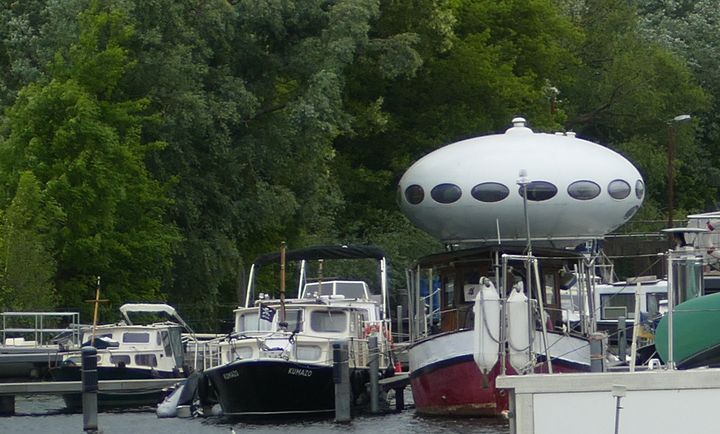Eine intergalaktische Utopie Ist da in der Ferne ein Ufo sichtbar? Man schaut zweimal hin, das Ellipsoid hat man doch schon einmal im Treptower Park gesehen? Vom finnischen Architekten Matti Suuronen stammt diese Utopie des Weltraumzeitalters. Er hatte für das Objekt aus glasfaserverstärktem Kunststoff ganz erdzugwandt die Nutzung als Skihütte, Wochenendhaus, Unterrichtsraum oder Arztpraxis vorgeschlagen.