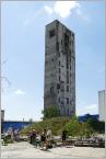 Der ehemalige volkseigene Betrieb "VEB Elektrokohle Lichtenberg" wurde nach der Wende privatisiert. In eine Ruine wollte niemand investieren. Deshalb wurde die Elektrokohle-Fabrik im Jahr 2010 zerlegt und verkauft, nur die beiden Betontürme blieben stehen. Eine Umnutzung machte wirtschaftlich keinen Sinn., andererseits störten sie auch nicht zwischen den Verkaufshallen.