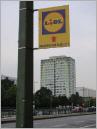 Auf unserem Weg von Friedenau nach Friedrichsfelde begegnen uns allenthaben Supermärkte der Lidl-Kette, insgesamt haben wir 5 auf unserem Weg gesehen und in Friedrichsfelde ein Hinweisschild auf einen weiteren. Die Wiedererkennbarkeit der Marke (corporate identity) ist bei diesen Bauten durch ein uniformes Aussehen gesichert, das durch die Abwesenheit jedes Versuchs architektonischer Gestaltung oder Anpassung an die Umgebung auffällt. Selbst in brandenburgischen historischen Altstädten wie Jüterbog oder Dahme findet man diese verglasten Faltschachteln des Billigkonsums.