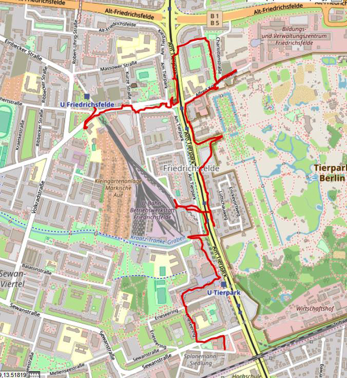 Auf dem Weg durch den Ortsteil Friedrichsfelde hat viele Plattenbauten, die inzwischen renoviert und modernisiert wurden, die meist wohl auch in umstrittene Wärmeisolierungen verpackt wurden. "Die vielen Plattenbauten des Stadtteils liegen eingebettet in viel Grün und dazwischen offenbart sich ein architektonisches Sammelsurium", kann man im Internet lesen.