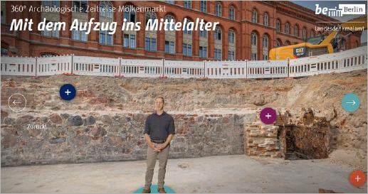 Die geplanten öffentlichen Führungen durch das Ausgrabungsgelände wurden coronabedingt ins Internet gestellt und vom Landesdenkmalamt als virtuelle Rundgänge veröffentlicht. Hier kann man rückwärts in die Jahrhunderte gehen und die Zeitzeugen betrachten: Feldsteinmauern und Ziegelmauern, Keller und Abfallgruben, Maschinenhaus, Kabelschächte, Unterstation, Trafokammern, elektrischen Warenaufzug.