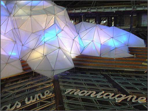Der Berg ruft - neu ist dieser Ausspruch nicht, aber sehr naheliegend. Im ehemaligen Palast der Republik, dem DDR-Prunkbau auf dem Boden des früheren Stadtschlosses ist eine Rauminstallation entstanden. Ein künstlicher Berg aus Kunststofffolien über einer 44 m hohen Stahlkonstruktion, die draußen am Fuß des Gebäudes beginnt und sich im Innern über den Großen Saal erstreckt, bis sie sich durch das Dach bohrt.