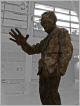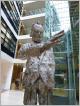 Auf unserer Route liegt das Willi-Brandt-Haus der SPD an der Ecke Wilhelmstraße und Stresemannstraße mit Blick auf das Hallesche Ufer und den Landwehrkanal. Medienwirksame SPD-Auftritte finden regelmäßig unter der Statue Willi Brandts im Innenhof statt, der seine Rechte mahnend, vielleicht auch etwas abwehrend erhebt. Das Gebäude nimmt in seiner Gestalt Bezug auf das Haus der Metallarbeitergewerkschaft eine Ecke weiter östlich am Kanal. (2). Der dazwischen liegende Mehringplatz wurde 1730 bei der Stadterweiterung angelegt. Von ihm gingen strahlenförmig die Wilhelmstraße (zum Pariser und Leipziger Platz), die Friedrichstraße nach Norden und die Lindenstraße ab (3). Vorbild für den Mehringplatz, der damals "Belle-Alliance-Platz" hieß, war die römische Piazza del Popolo, also der antike Platz, über den der Besucher Rom von Norden her betrat. Im 2.Weltkrieg zerbombt, umkämpft und total zerstört, wurde der Platz mit Wohnbauten im Sozialen Wohnungsbau umrandet. Der entstandene soziale Brennpunkt soll durch ein Quartiersmanagement befriedet werden. Ein Häuserblock zur Wilhelmstraße bietet einen frischen Anblick durch Bemalung der Betonflächen. Einzig die Friedenssäule von 1843 steht wieder auf dem Platz, allerdings hatte bei unserem Besuch Victoria die Säule verlassen, vielleicht war es ihr zu kalt geworden.