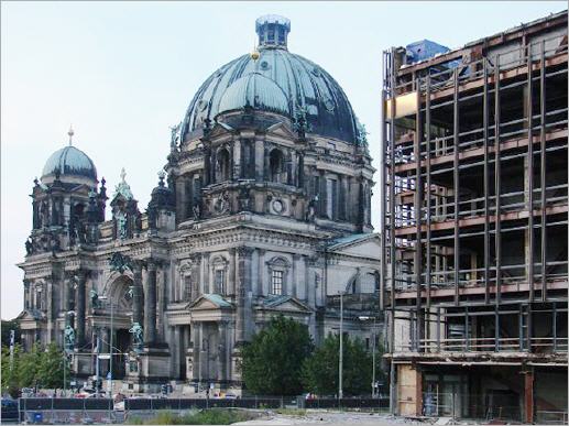"Eine demokratische Entscheidung" steht an den Erläuterungstafeln zur Palastschaustelle. Na ja, formal mag das ja stimmen, aber ... Wir besuchen den Palast der Republik, um seinen "Rückbau" anzuschauen. Sprache als Ausdruck der Macht und Verschleierung, "Abriss" wäre ein wahres Wort. Dieser Abriss ist neben der Abrechnung mit dem vergangenen politischen System, dem Beseitigen seiner Symbole aber auch eine Berliner Tradition, die schon in früheren Jahrhunderten gepflegt wurde. Ich erinnere nur an den Ausbau Berlins zur Festungsstadt nach dem Dreißigjährigen Krieg. Diese Festung wurde nie gebraucht und dann auch wieder "zurückgebaut", abgerissen. Andere Beispiele sind in mehreren unserer Rundgänge nachzulesen (1).