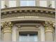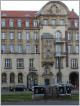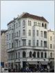 Der markante Eckbau am entgegengesetzten westlichen Ende der Torstraße ist knapp vierzig Jahre älter und bezieht sich auf ein Stück Berliner Industriegeschichte vor den Toren der Stadt. Rauchende Fabrikschornsteine waren ein Symbol des Fortschritts, die Maschinenfabriken und Eisengießereien von Borsig, Egells, Pflug, Wöhlert, Schwartzkopff produzierten hier im "Feuerland" (5). Nachdem Borsig nach Moabit abgewandert war (6) und seine Kolonnaden zur Königlichen Technischen Hochschule versetzt waren (7), konnte an der prominenten Ecke vor dem Oranienburger Tor ein Neubau errichtet werden. Rückgriff auf historische Formen war angesagt, Erdgeschoss und erster Stock sind horizontal durch Bänder und Putzquader zusammen gefasst, darüber betonen Säulen in Kolossalordnung (über zwei Etagen) die Vertikale. Wie interessant der Vergleich zum Kaufhausgebäude, die Endbauten der Torstraße ähneln sich in ihrer Gliederung.
