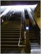 Der U-Bahnhof Hauptbahnhof geht insgesamt 20 Meter in die Tiefe, er ist mit dem Straßen- und Fernbahntunnel zusammen gebaut worden. Die unterirdische Halle vor dem Bahnsteig zum nördliche Ausgang der Invalidenstraße ist ein ausgedehnter Raum, der mit querlaufenden Lichtbändern und zum Fluchtpunkt strebenden Fußbodenfeldern eine klare Richtung vorgibt, ohne Hektik oder Enge zu erzeugen. Mir gefällt dieser Raum außerordentlich gut.