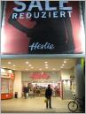Direkt nach dem Auftauchen aus dem Untergrund fallen wir fast in den Eingang des Hertie-Kaufhauses hinein. Das ist eines jener kleinen Kaufhäuser, von denen sich der Karstadt-Konzern im Rahmen seiner Sanierung getrennt hatte. Später warf er dann auch noch seinen Namen ab, der Konzern heißt jetzt Arcandor. Es ist ein Phänomen unserer Zeit, dass alteingeführte Marken und Symbole leichtfertig einem Fortschritt geopfert werden, der zu No-Names führt (siehe z.B. Ruhnke-Optik, jetzt synoptik oder Bewag, jetzt Vattenfall).