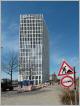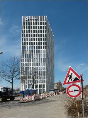Total-Turm An den Speditions-Laderampen knabbert gerade der Abrissbagger, der ehemalige Containerbahnhof liegt als endlose Betonfläche in der Landschaft. Vor dem Europaplatz am Hauptbahnhof (heißt das Gebiet deshalb "Europacity"?) hat sich 2012 der weltweit viertgrößte Ölmulti Total in einem für ihn errichteten Büroturm ("Tour Total") eingemietet. Das Hochhaus mit 69 Metern hat eine Rasterfassade, die vielfältiger ist, als der Blick von weitem vermuten lässt. Die Längsseite des Gebäudes ist leicht geknickt, vertikale Elemente in Form eines K und eines T geben der Fassade eine unregelmäßige plastische Struktur (2). Zwei Hotels entstehen gerade zwischen diesem Büroturm und dem Hauptbahnhof, wir sehen nur das Bauschild und die Baugrube. An der Westseite der Heidestraße sind vereinzelt Altbauten stehen geblieben.