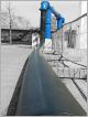 Graffiti Im Juli 2005 waren wir schon einmal an der Heidestraße, damals stand der Containerbahnhof noch. Das "Blaue Haus" an der Perleberger Brücke konnten wir seinerzeit ausgiebig studieren, weil ein Gewitter uns den weiteren Weg abgeschnitten hatte. Es steht noch, ist aber nicht attraktiver geworden. Etwas anderes hat diesmal unsere Aufmerksamkeit auf sich gezogen: Die gelbe Sternschnuppe - ein Stern mit einem Schweif - als Graffiti an einem Betonpfeiler der ICE-Brücke hoch oben über uns. Auch diese Graffitis waren schon vor acht Jahren dort, wie die alten Bilder zeigen. An schier unerreichbaren Stellen finden sie sich meist an Bahnanlagen. Kripoe heißt der Sprayer, der außerdem gelbe geballte Fäuste und Rollschuhe „bombt“, alles immer gleichbleibend, inhaltlich nicht variiert, auf Masse angelegt, nicht auf Qualität. In den einschlägigen Internetforen prallen die Meinungen aufeinander: - cool; - lebensmüde Waghalsigkeit; - einfach zu schlicht; - die S-Bahnfahrt wird dadurch zum Vergnügen; - Kripoe hat wie Hund sein Revier markiert. Die Fäuste - so rätselt einer - könnten eine politische Komponente haben (wie Black Power), ein anderer denkt sich einen anti-kapitalistischen Kontext ganz automatisch dazu. Auch in einer Masterarbeit über Streetart wird Kripoe gewürdigt. Man sieht, wir leben in einer pluralistischen Gesellschaft.