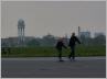 Natürlich haben wir in der Oderstraße den neu geschaffenen Eingang zum ehemaligen Flughafen genutzt. Gestern und vorgestern war hier Volksfest zur ersten Öffnung des Geländes. Heute verlieren sich die Besucher auf dem eingezäunten Gebiet, wir können einen Eindruck von der Weitläufigkeit der Fläche bekommen. Wenn Berlin wieder den Investoren die Planung der Städtebaumaßnahmen überlässt, weil es sie selbst nicht bezahlen kann, dann besteht die Gefahr von Einseitigkeit, wenn nicht gar Investorenhörigkeit, die bei diesem riesigen Entwicklungsgebiet viele Chancen verbauen würde. Die Internationalen Gartenbauausstellung 2017 soll den "Kühlschrank Berlins" mit seiner Bedeutung für das Stadtklima Berlins entwickeln helfen, das "einzigartiges Erlebnis von Weite und Freiheit" wird von der Stadtentwicklungsverwaltung gepriesen, aber wird es auch erhalten bleiben?