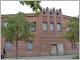 Die an das Schlachthofgelände angrenzende Hausburg-Europaschule fällt mit ihrer ungewöhnlichen Fassade sofort ins Auge. Die gesamte Fassade besteht aus einzelnen Quadern, die geschliffenen Diamanten ähneln und so dreidimensional aus der Fläche hervortreten. Diese Diamantquader sind eine Erfindung der Renaissance, sie wurden allerdings nördlich der Alpen nur im Sockelbereich verwendet, auf der gesamten Fassade sind sie ziemlich einmalig. Eine Bärenskulptur am Pfeiler (diesmal ohne Wappen) weist darauf hin, dass hier ein städtisches Bauwerk entstand, entworfen von dem Berliner Stadtbaurat Ludwig Hoffmann.