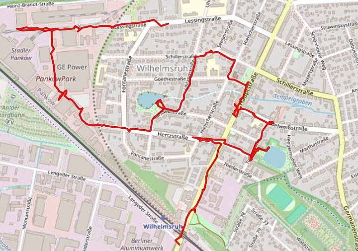 Heidekrautbahn In Wilhelmsruh war ab 1901 der Ausgangspunkt einer Bahnlinie, die in die nach Norden in die Schorfheide führt - der Heidekrautbahn. Die hatte einen eigenen ebenerdigen Bahnhof neben dem Bahnhof Wilhelmsruh an der Nordbahn, der später auf einen Bahndamm verlegt wurde. Die Heidekrautbahn blieb ebenerdig. Der Industriestandort Bergmann-Borsig wurde mit einem Anschlussgleis verbunden. Die Bahn in die Schorfheide nutzten Berliner für Ausflüge in den Barnim und Arbeiter als Zubringer zu Bergmann-Borsig.