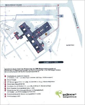 Die Helios-Kliniken haben den Krankenhaus-Standort Berlin-Buch nach der Wende gekauft und größtenteils ausgebaut. Zum Kaufobjekt gehörten auch das Regierungskrankenhaus und das Stasi-Krankenhaus, beide nebeneinander in einem ummauerten und bewachten Gelände gelegen. Doch hier wurde nichts bewegt, die beiden ehemaligen Krankenhäuser fielen in Dauerschlaf. Trotz der fortgesetzten Bewachung gelang es Neugierigen, hier einzudringen. Vandalismus blieb nicht aus, doch den hochwertigen Status des Hauses kann man trotz der Beschädigungen noch gut erkennen.