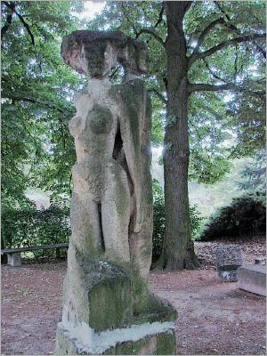 Steinerne Wand Der vordere Teil des Parks ist als Schauteil gestaltet mit Beeten, Stauden, Sträuchern, Blumen, Steingarten, Bäumen (Arboretum). Dahinter öffnet sich die Landschaft mit Feldern, Wiesen, Baumgruppen. Die Apfelbaum-Allee führt zur "Geologischen Wand", einem steinernen Querschnitt durch die obere Erdkruste Deutschlands.