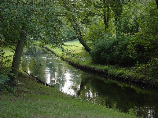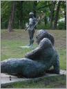 Der Bürgerpark (1) macht seinem Namen Ehre - er wird wirklich von den Bürgern begangen, besessen, belegt und bespielt. Eine liegenden männliche Figur und eine stehenden Mädchengestalt ("Dichter und Mädchen") an der Panke sind Bildhauerwerke von Sabine Teubner Mbaye.