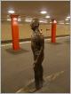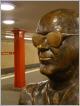 Doch zurück zu den Bahnhöfen. Nur zwei Bahnhöfe auf der Strecke zwischen Alexanderplatz und Pankow liegen oberirdisch auf dem Magistratsschirm, es sind die von Grenander gebauten und 1913 eingeweihten Stationen Schönhauser Allee (ehemals Nordring) und Eberswalder Straße (ehemals Danziger Straße). Mit der Umsteigemöglichkeit zur Ringbahn war die Schönhauser mit 9 Mio. Fahrgästen 1929 an fünfter Stelle des U-Bahn-Fahrgastaufkommens, nach Potsdamer Platz (13 Mio.), Alexanderplatz, Hallesches Tor und Stadtmitte. Die unterirdischen Bahnhöfe Rosa-Luxemburg-Platz, Senefelderplatz (2) und Vinetastraße wurden ebenfalls von Grenander gebaut, ihre heutige Ausstattung kann man zurückhaltend als "schlicht" bezeichnen. Vor der Wiedervereinigung feierten 1987 zwei getrennte Berlins das 750.Stadtjubiläum, aus diesem Grund wurde in Ost-Berlin auch der U-Bahnhof Vinetastraße neu gestaltet und der "Schreitende" von Rolf Biebl auf dem Bahnsteig aufgestellt (3). Diesen obercoolen Typen mit Sonnenbrille hätte ich nicht in der Zeit des sozialistischen Realismus verortet, so kann man sich täuschen.