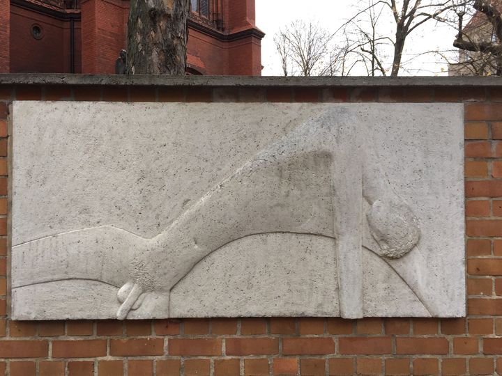 Zwei Kunstwerke sind nach der Wende vor der Kirche aufgestellt worden: Ein Abguss der Bronzeplastik "Geistkämpfer" von Ernst Barlach aus dem Jahre 1928. Die Nazis entfernten die Plastik vor der Kieler Universitätskirche als "entartete Kunst". Jetzt wurde sie hier aufgestellt, um den Einsatz der Gethsemanekirche für den Frieden zu ehren. Und das Relief "Widerstand" des Berliner Bildhauers Karl Biedermann findet sich vor der Kirche. Auf einer weißen Steinplatte hebt sich reliefartig ein gestürzter Mann ab, der sich aufzurichten versucht.