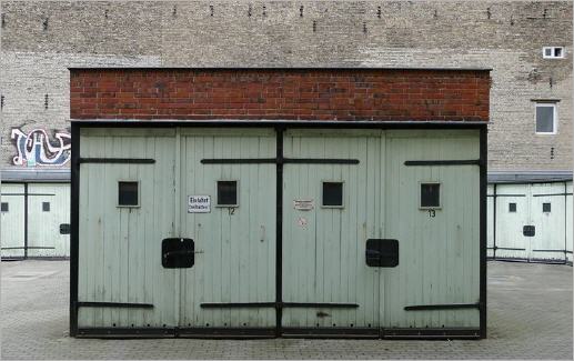 Bei früheren Rundgängen lagen diese Garagen aus der Zeit der Automobilentwicklung bis vor dem Zweiten Weltkrieg an unserem Weg: