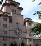 Katholische Kirche St. Augustinus Was muss das für ein Kirchenbau sein, dessen Modernität dem Bischof so sehr missfiel, dass er den Hilfsbischof (Weihbischof) vorschickte, um ihn einzuweihen? Eine sakrale Handlung, bei der der Weihbischof "knöcheltief im Morast einer Brache" stand und "dröhnende Fanfaren zwischen hohen Berliner Mietskasernen" ertragen musste? Ein Gotteshaus, das "einen Hauch von Glamour im Arbeiterviertel" verbreitete, dessen "beklagenswerte Raumakustik aber eine peinlichen Überraschung" war?