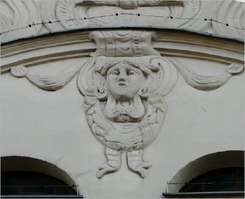 Eine Türumrandung warnt mit einem Spruch aus der Offenbarung des Johannes vor der Genusssucht im Leben: "Und die Welt vergeht mit ihrer Lust; wer aber den Willen Gottes tut, der bleibt in Ewigkeit".