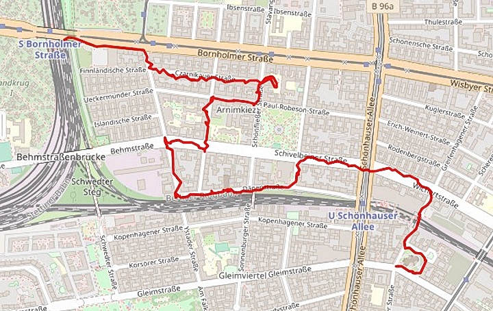 Zwischen den S-Bahnhöfen Bornholmer Straße und Schönhauser Allee liegt ein beschauliches und gepflegtes ehemaliges Arbeiterviertel mit dem Arnimplatz in der Mitte, das wir heute besuchen. Vielleicht sind die gepflegten Altbauten auch eine Ausstrahlung des Arnimplatzes, an dem die DDR 1972 die Reparatur und Modernisierung des Altbaubestandes in Angriff nahm.