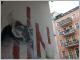 Der kleine Park an der Rückseite der Gustave-Eiffel-Schule wird von zwei Brandwänden flankiert, das Wandbild auf der rechten Seite weckt unsere Aufmerksamkeit. Gerd Neuhaus hat in Berlin viele Brandwände mit Reißverschlüssen, Verzierungen, Durchdringungen, Architektur-Illusionen von ihrem Grau befreit. An der Choriner Straße 46 ist es ein Werk des Trompe-l’œil („täusche das Auge“). Sind die Säulen echt oder gemalt? Welches Fenster lässt sich öffnen? Die Brandwand auf der anderen Seite der Grünfläche zeigt Graffiti Art. "Wo ist die Mieze?" fragt Little Lucy und legt das Gewehr an. Die Katze hat es ihr angetan, aber unschuldig ist Little Lucy nie. Mal dient die Katze als Sitzfläche einer Schaukel, mal hängt sie am Strick um den Hals, mal wird sie getoastet oder mit dem Hackebeilchen in zwei Stücke zerteilt, El Bocho treibt hier mit Streetart seinen skurrilen Schabernack .