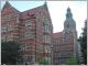 In der Wichertstraße, dem Humannplatz gegenüber steht der "betende Riese am Humannplatz". die Pfarrkirche "Heilige Familie" mit einem außergewöhnlich wuchtigen Turm. Diese katholische Kirche erinnert von ihren Ausmaßen her an die evangelische Segenskirche mit einem 75 Meter hohen Turm, die wir bei einem früheren Spaziergang in der Schönhauser Allee gesehen hatten.