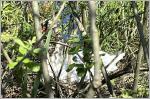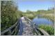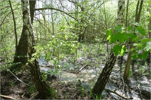 Moorstege Der weitere Rundgang verläuft auf Stegen über dem Moor mit Feuchtwiesen, Kleingewässern und überflutetem Erlenbruchwald. Die kleinen Seen sind zumeist verlandet. Im Unterholz brütet ein Höckerschwan. Mehrfach ist ein Zilpzalp zu hören - der Vogel hat seinen Namen vom Klang seines Gesangs. Auch Nachtigallen hören wir und andere Vögel. Die üppige Vegetation können wir mangels eigenen Wissens nicht benennen, Ausschilderungen des Lehrpfads können darüber hinweghelfen.