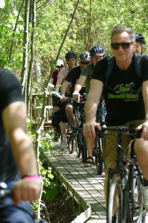 Die Moorwiesen am Tegeler Fließ in Lübars sind mit zwei Stegen überbrückt und zu einem Lehrpfad ausgestaltet. Bereits bei der Einweihung 2015 waren an einem Nachmittag mehr als 400 Radfahrer, Freizeitsportler, Spaziergänger und Skater auf den Stegen unterwegs. Dass man als Fußgänger keine exklusiven Rechte hat, nicht einmal gleichberechtigt auf den Stegen unterwegs ist, wurde uns durch einige Pulks von Radfahrern deutlich demonstriert.